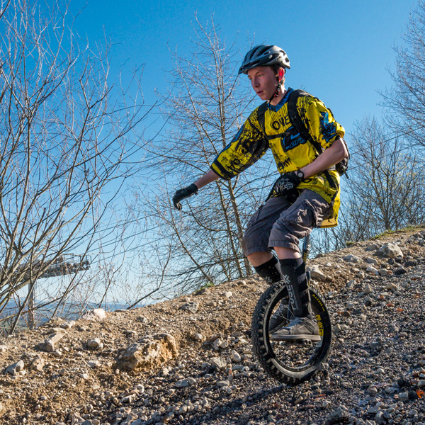 Le muni et le monocycle tout terrain. Il y a le crosscountry et la descente en pleine nature. Cette pratique nécessite de savoir rouler et d'avoir un monocycle munie d'un frein.